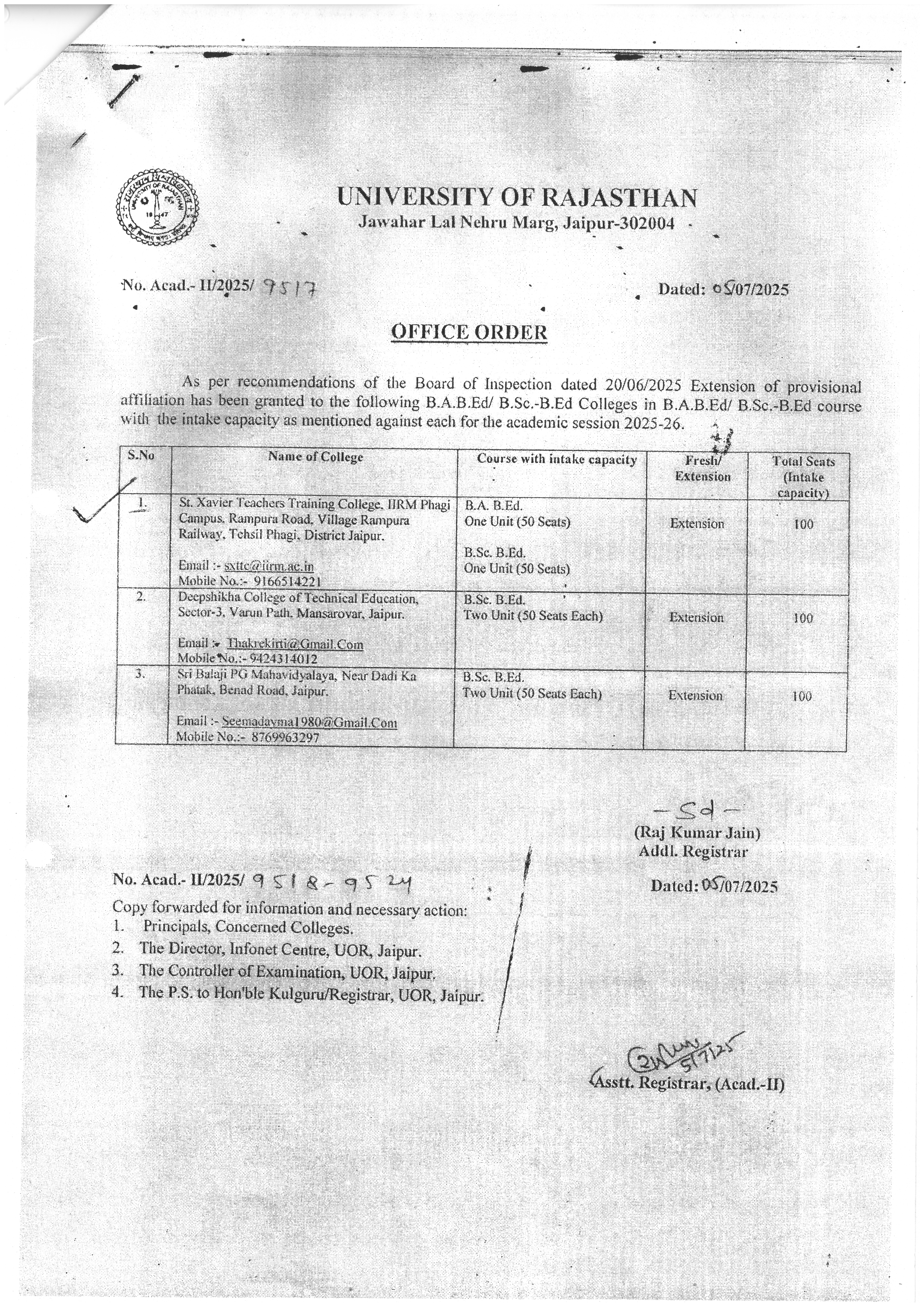 BEd Affiliation 2025-26